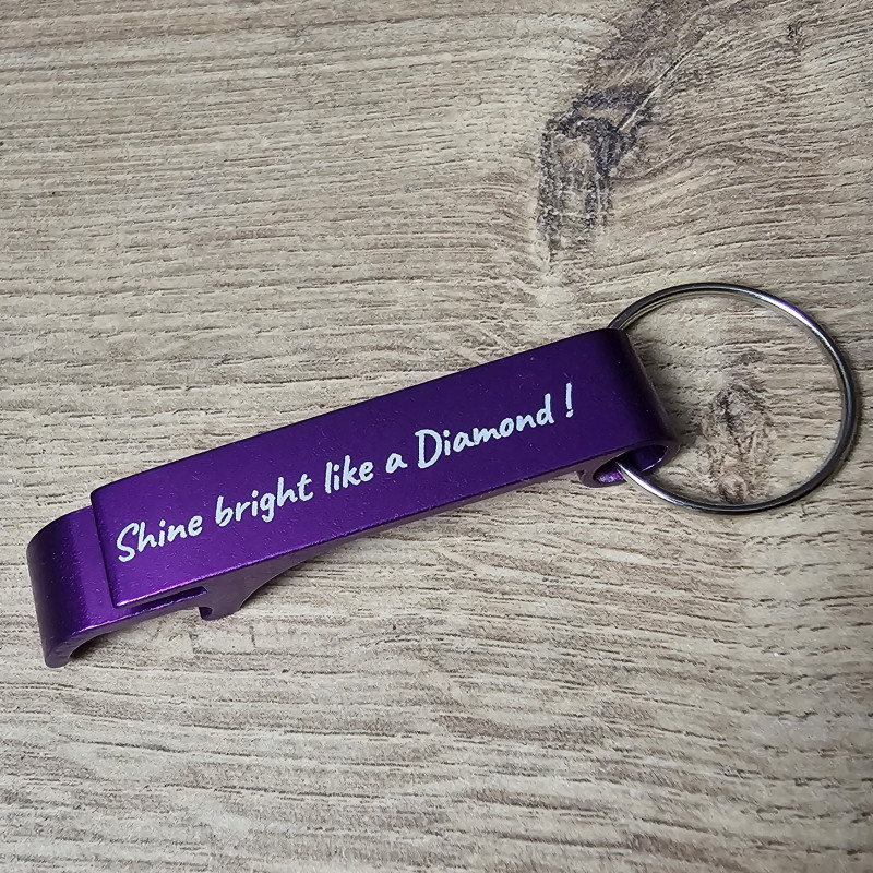 - Dieser Aluminium-Faschenöffner ist ideal, um an Ihrem Schlüsselbund oder Schlüsselanhänger verstaut zu werden. So ist er immer griffbereit, wenn eine Flasche zu öffnen ist.
